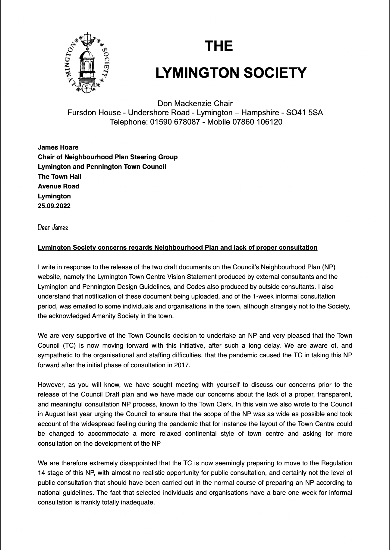 It is for this reason that the Society has written to the Town Council and to the local press suggesting that the current process should be paused in order for a new attempt to be made to reach out to the local community. This would enable residents to decide the issues that are felt to be important locally rather than the issues that the paid external consultants believe are important.
