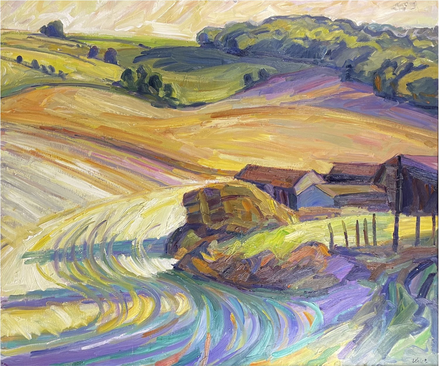 Nick Schlee – Streatley Farm with a Swirl of Stubble © Nick Schlee